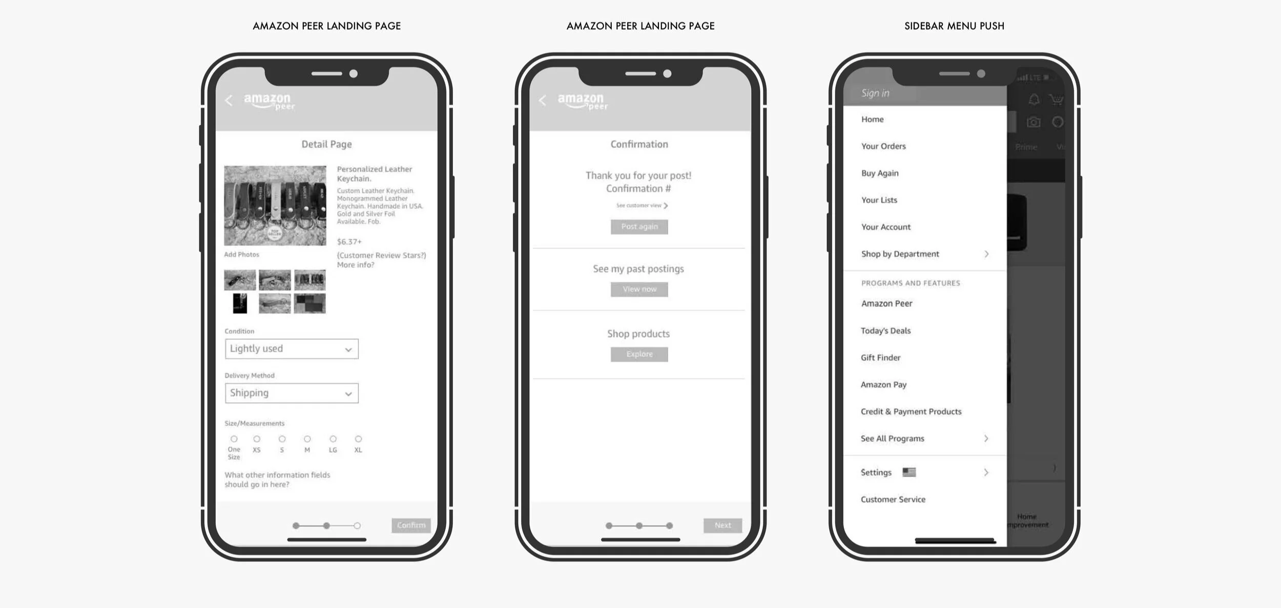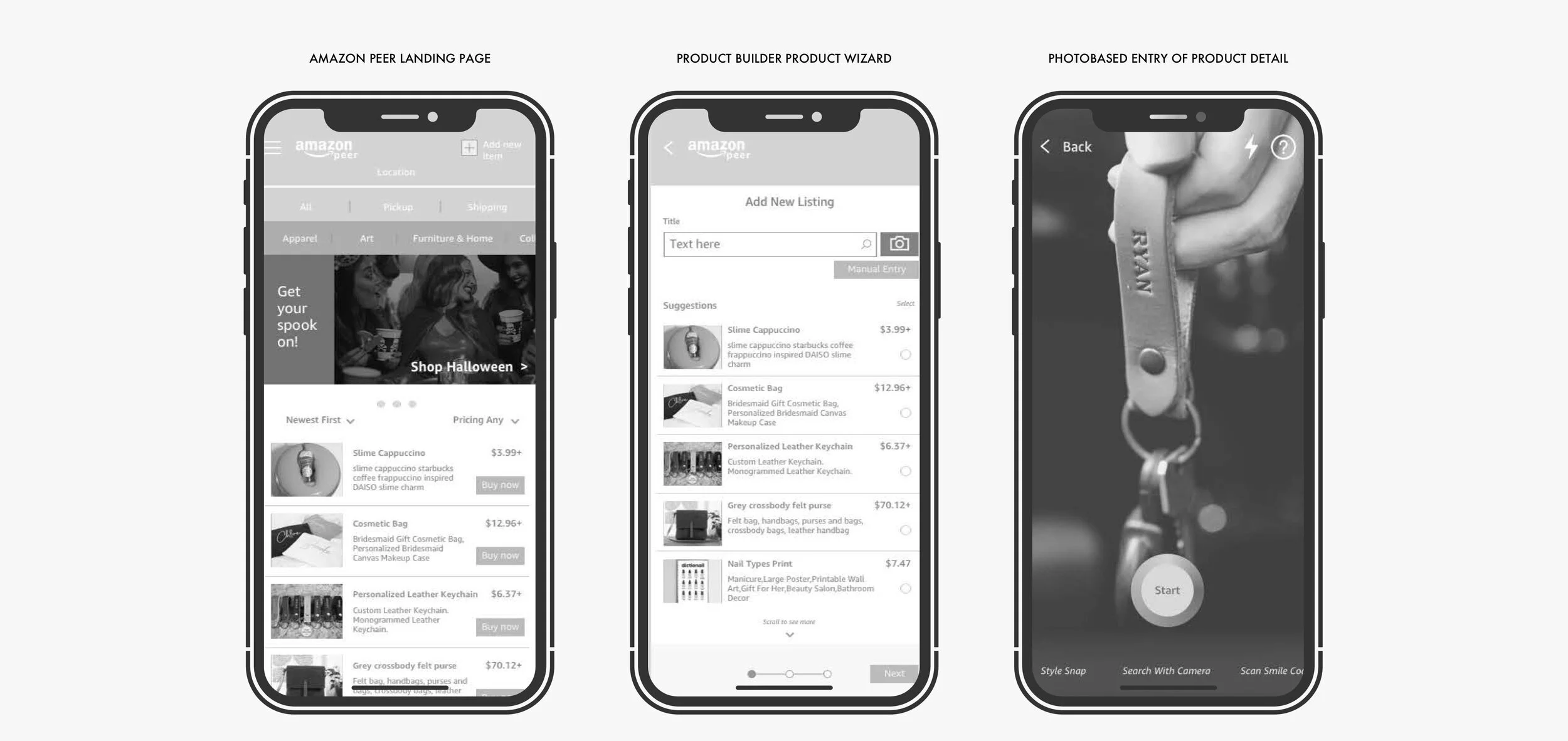 During a 6-week discovery phase we investigated Amazon’s target audience through in-person interviews and surveys that considered two segments (e-commerce buyers and sellers). From our analysis, we derived key personas and user profiles. We also documented in-depth competitive analysis along with a heuristic audit of the current app. During the second 6-week phase, we developed user stories that led to an MVP based on our hypotheses. Prototyping in three rounds, we validated through user-testing.
